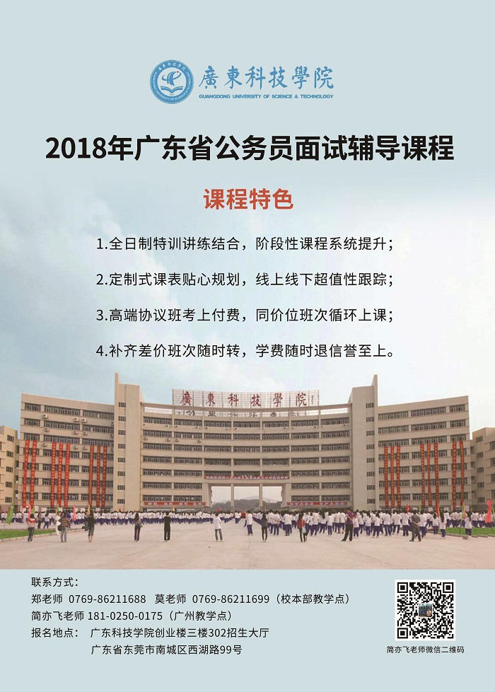 广东科技学院公务员培训班,精选优秀教师授课,配发权威复习资料,提供优质的学习环境,为你的公务员考试之路保驾护航,助你圆成“公”梦!
