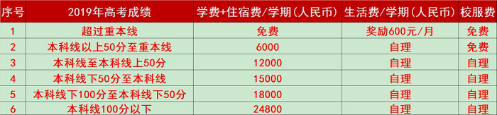 3、收费标准:根据广东省2019年普通高校招生录取最低控制分数线,实行分段收费。