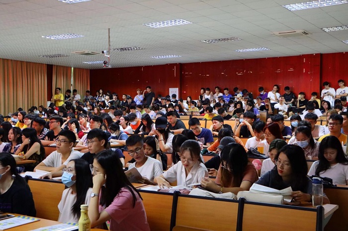本网讯(继续教育学院)9月16日,由我校继续教育学院与广州领航教育专插本培训机构合作举办的广东专插本升学指导公益讲座(南城校区专场)在5-101报告厅顺利举行。南城校区2018、2019级专科生约350人参加了此次讲座,现场人头涌涌,气氛热闹非凡。