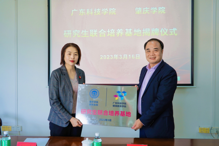 3月16日,肇庆学院研究生院与广东科技学院继续教育学院就共建“研究生联合培养基地”,在肇庆学院行政楼举行揭牌仪式,并召开战略合作交流会议,正式拉开研究生联合培养合作的序幕。