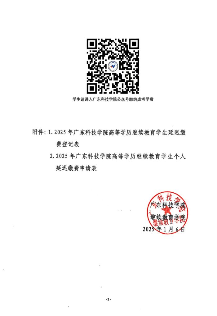 附件1:2025年广东科技学院高等学历继续教育学生延迟缴费登记表