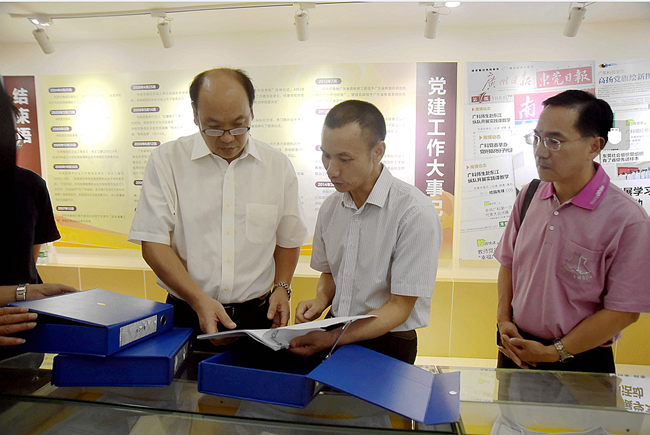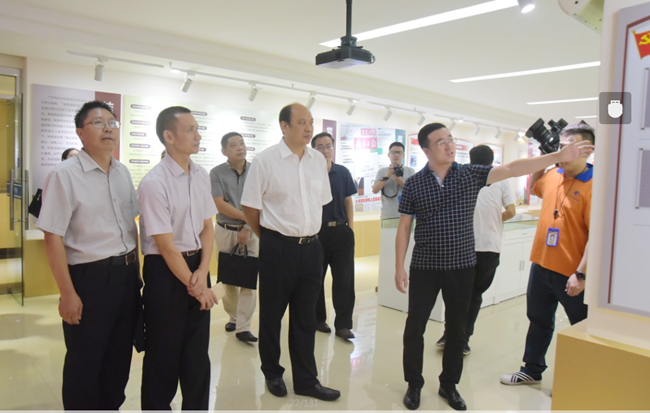 杨晓棠常委一行在党委书记梁瑞雄等人的陪同下参观了学院“百年学府 党建领航”党员活动中心,仔细询问了我院意识形态和思想政治工作的主要做法,查看了相关材料,对我院的意识形态和思想政治工作开展情况予以了肯定,并针对落实全国、全省高校思想政治工作会议精神提出了指导意见。