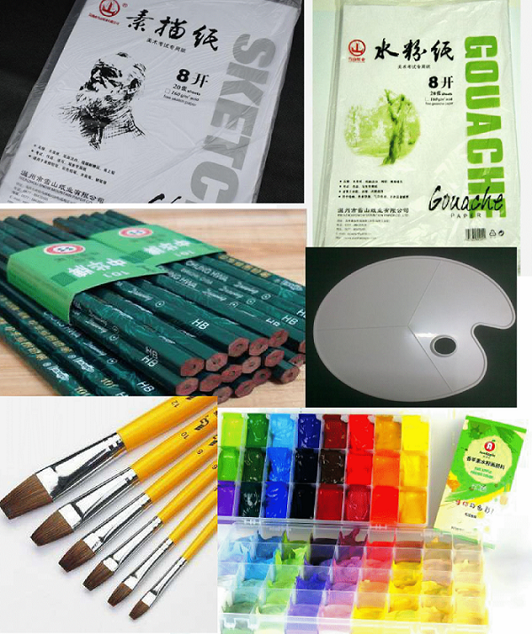 1、考试用具: 4开画板一个(由考场统一为考生提供,考生不需要准备),8开素描纸、8开水粉纸、绘图铅笔2B-6B、削笔刀、橡皮擦、塑料胶带或图钉(固定画纸用)、水粉颜料、调色盘、水粉笔、水桶、吸水海绵、黑色签字笔等考试用具。(考生需自备)