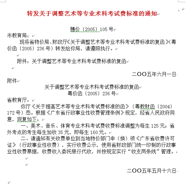 2、《转发关于调整艺术等专业术科考试费标准的通知》