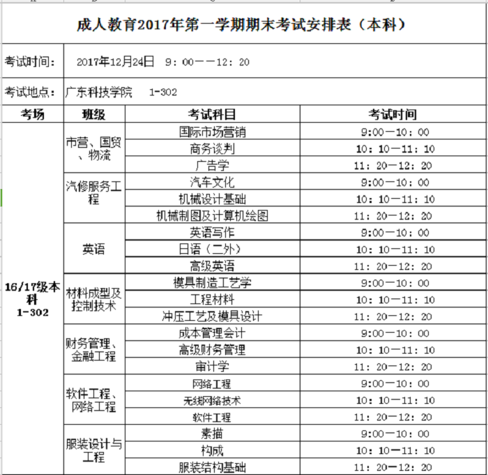 期末将至,请同学们于12月24日上午9:00,带齐考试用具及身份证、学生证准时参加考试,考试时间、地点安排如下: